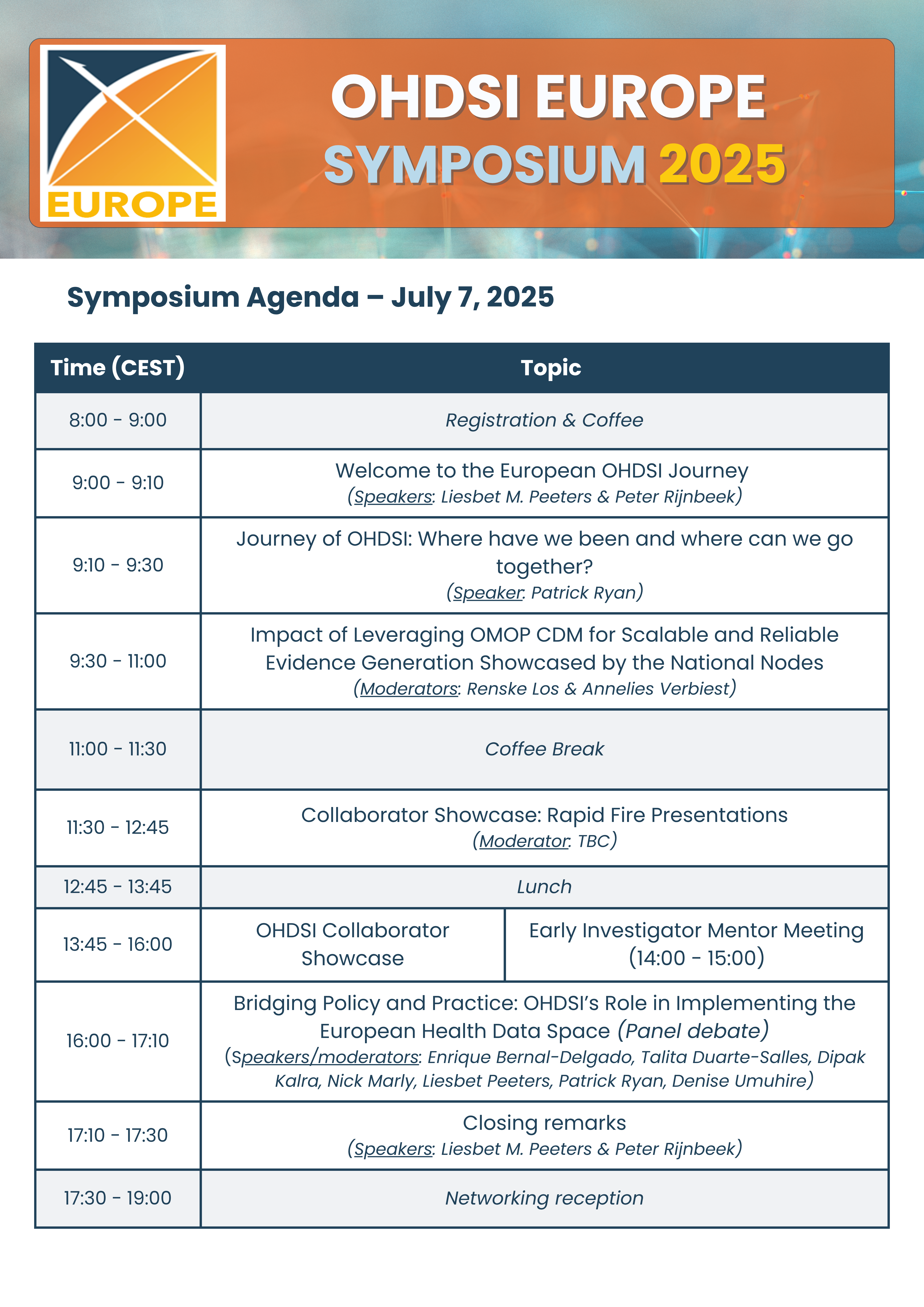 - July 7th, 2025: European OHDSI Symposium in Hasselt